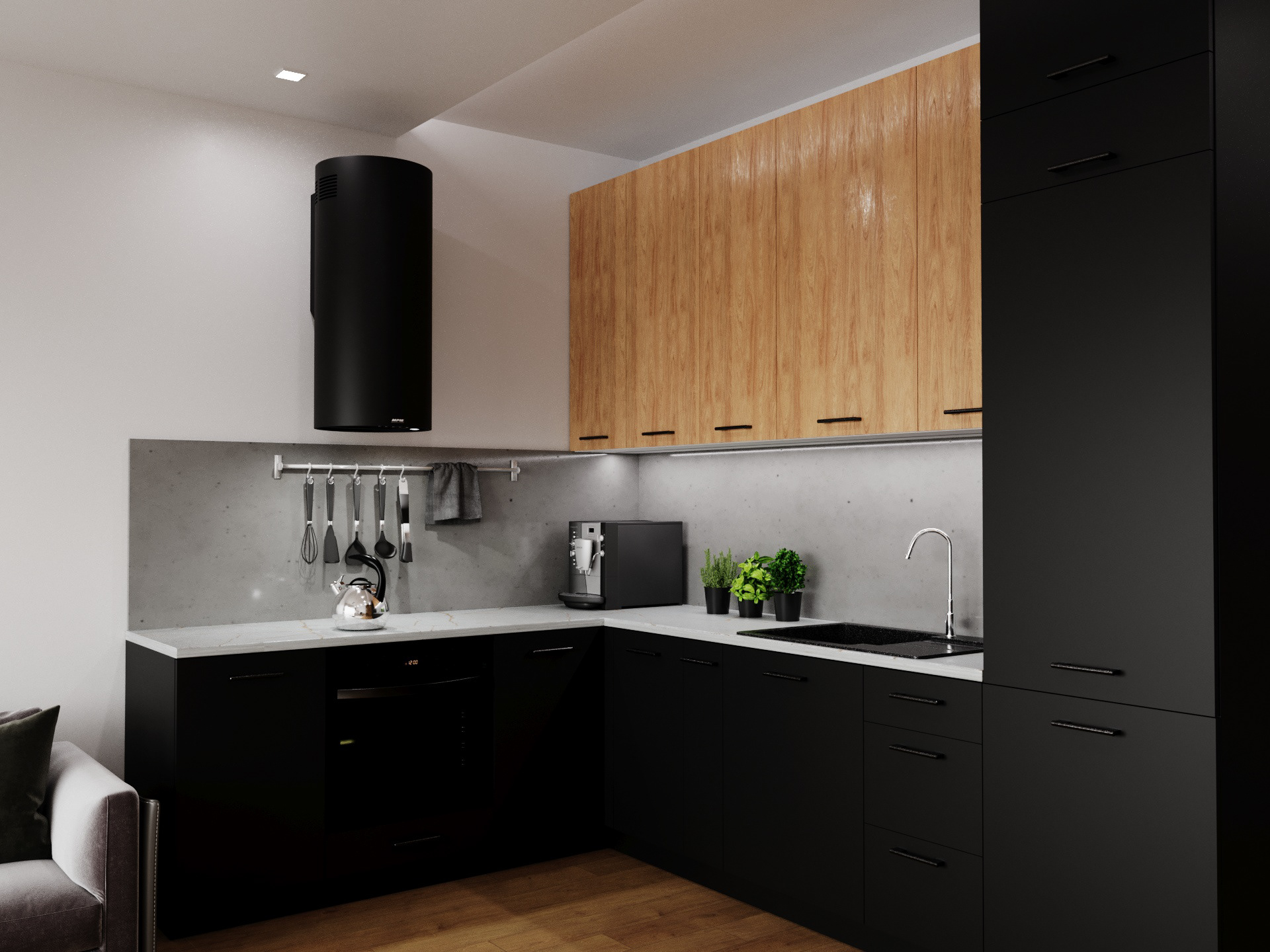 Wizualizacja aranżacji mikro apartamentu wykonana dla firmy Layman.