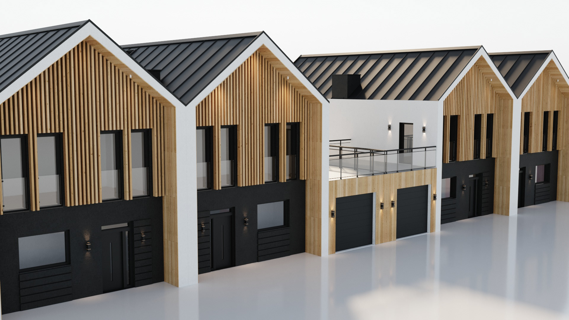Projekt wizualizacji osiedla domków jednorodzinnych Baśniowa Kraina dla warszawskiego dewelopera.