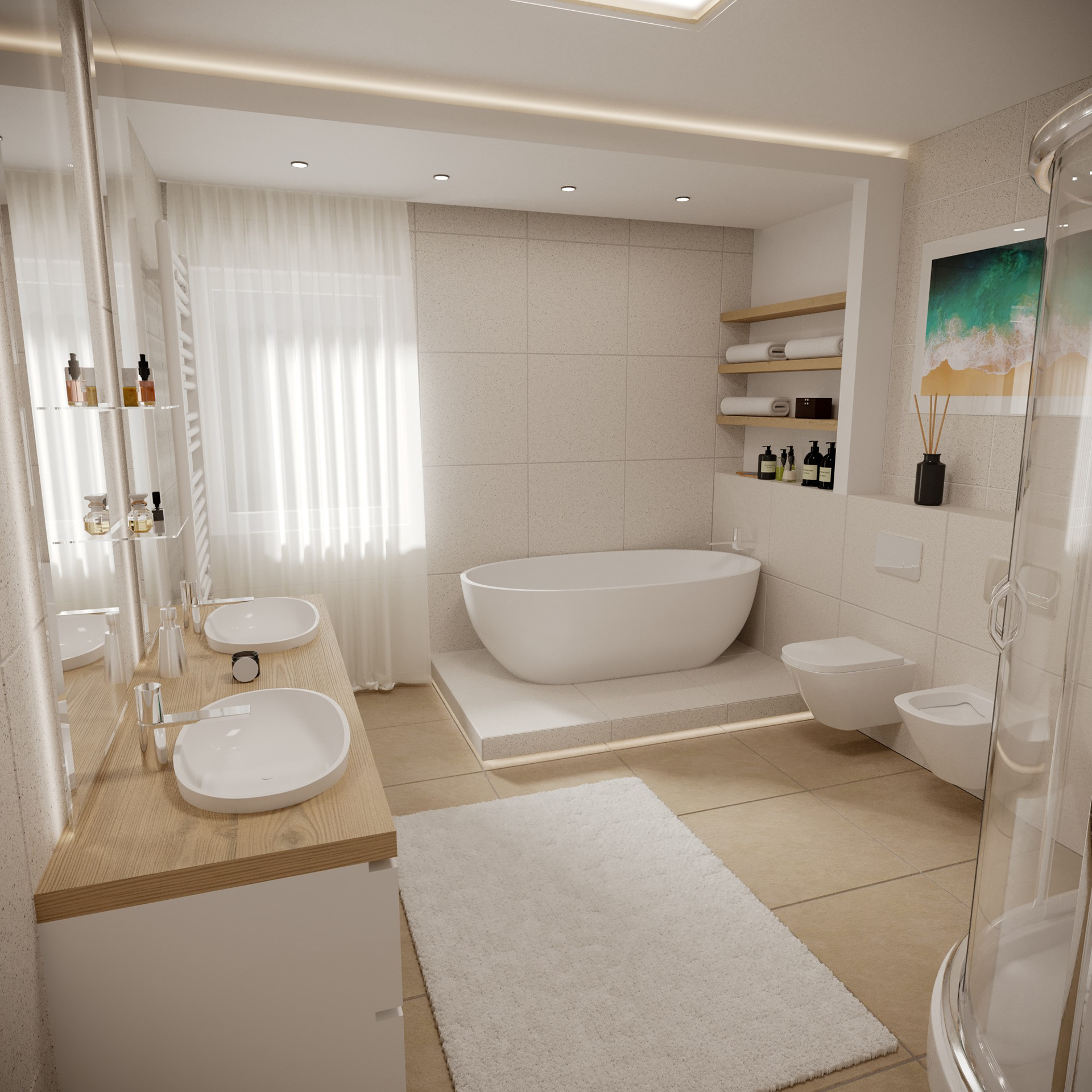 Wizualizacja aranżacji łazienki wykonana dla dewelopera Dom Pełen Energi.
