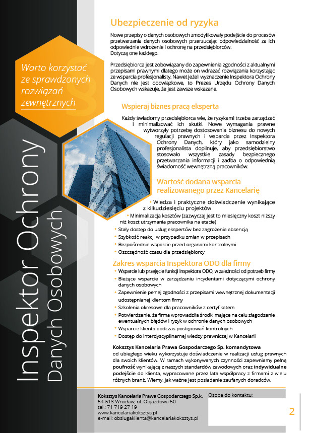 wykonany dla wrocławskiej kancelarii prawnej Koksztys.