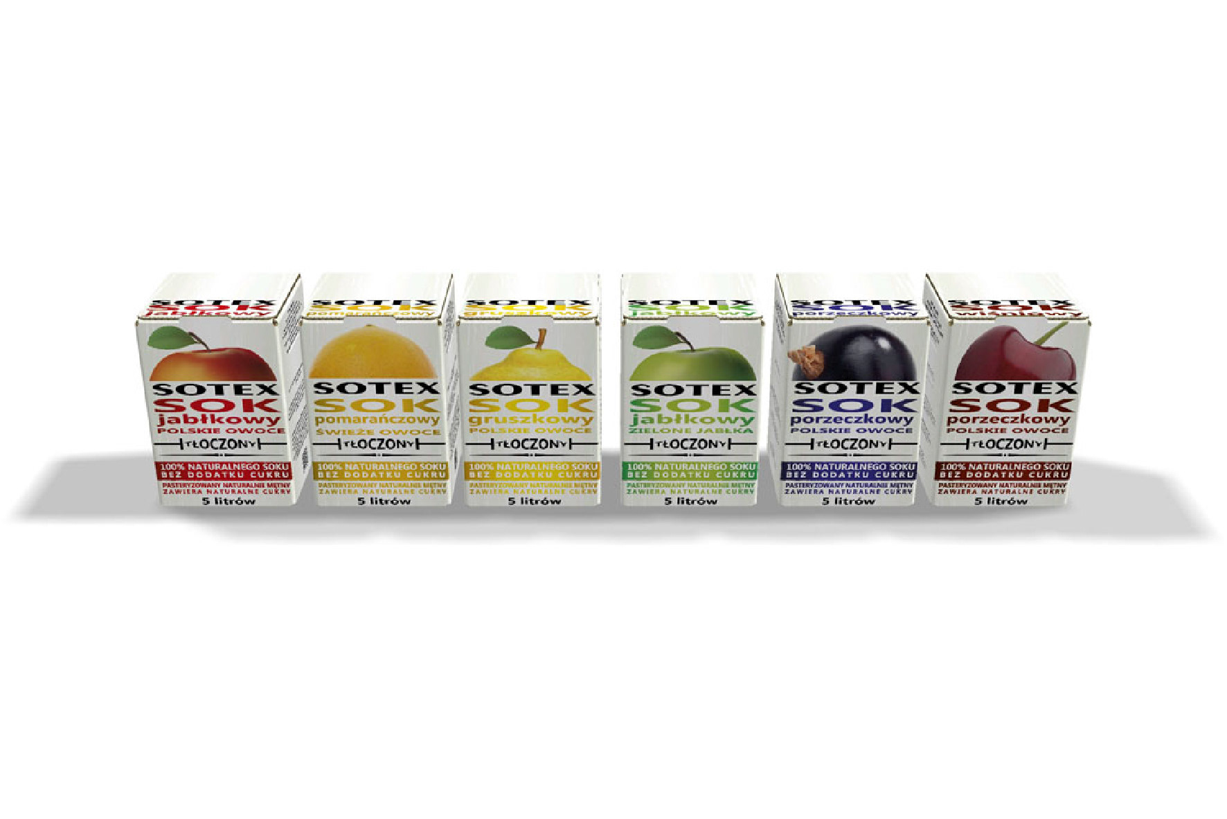 Projekt opakowania typu bag-in-box na świeżo-tłoczone soki owocowe producenta Sotex.