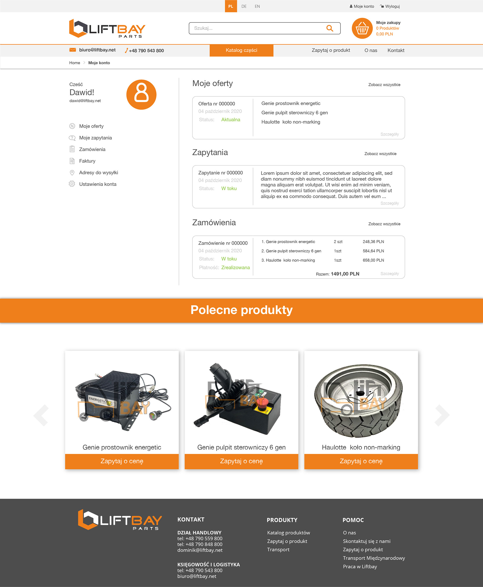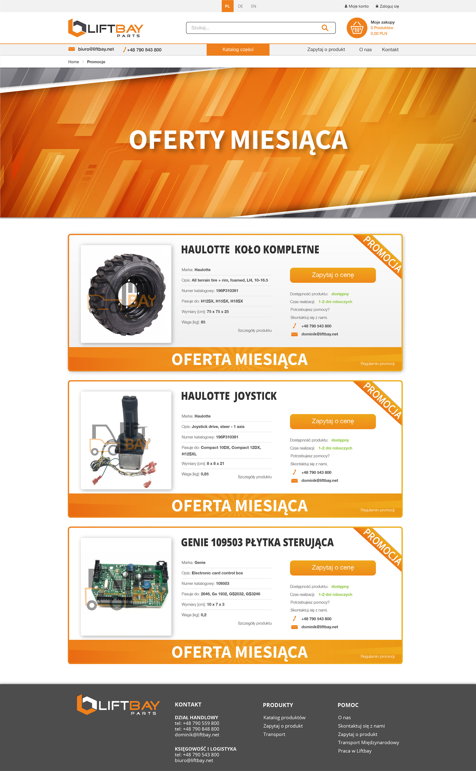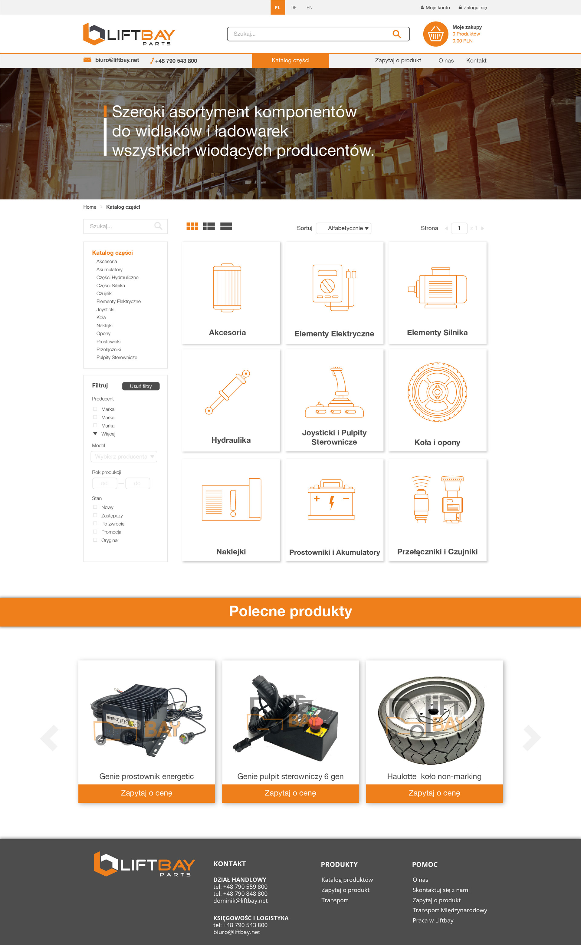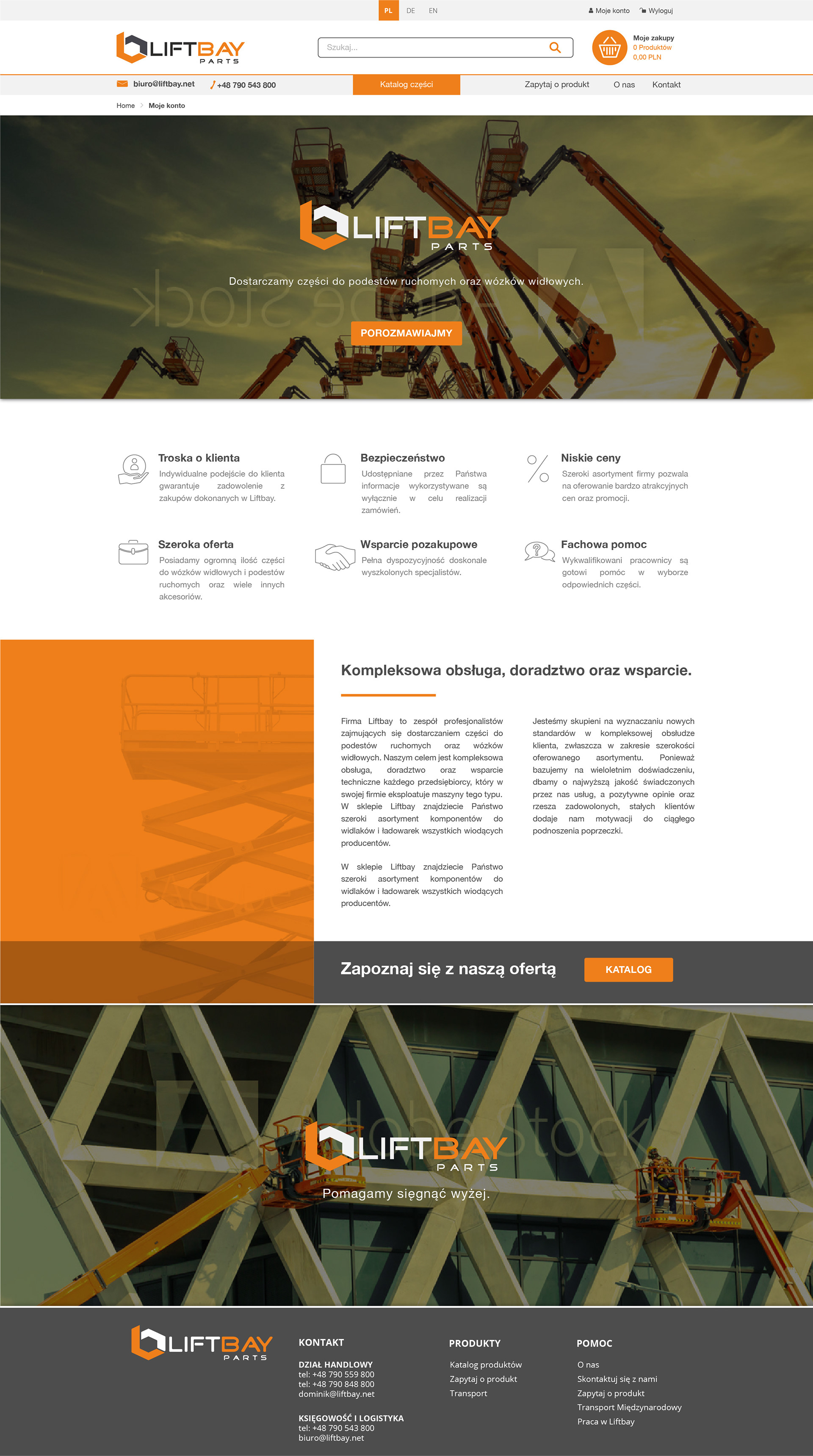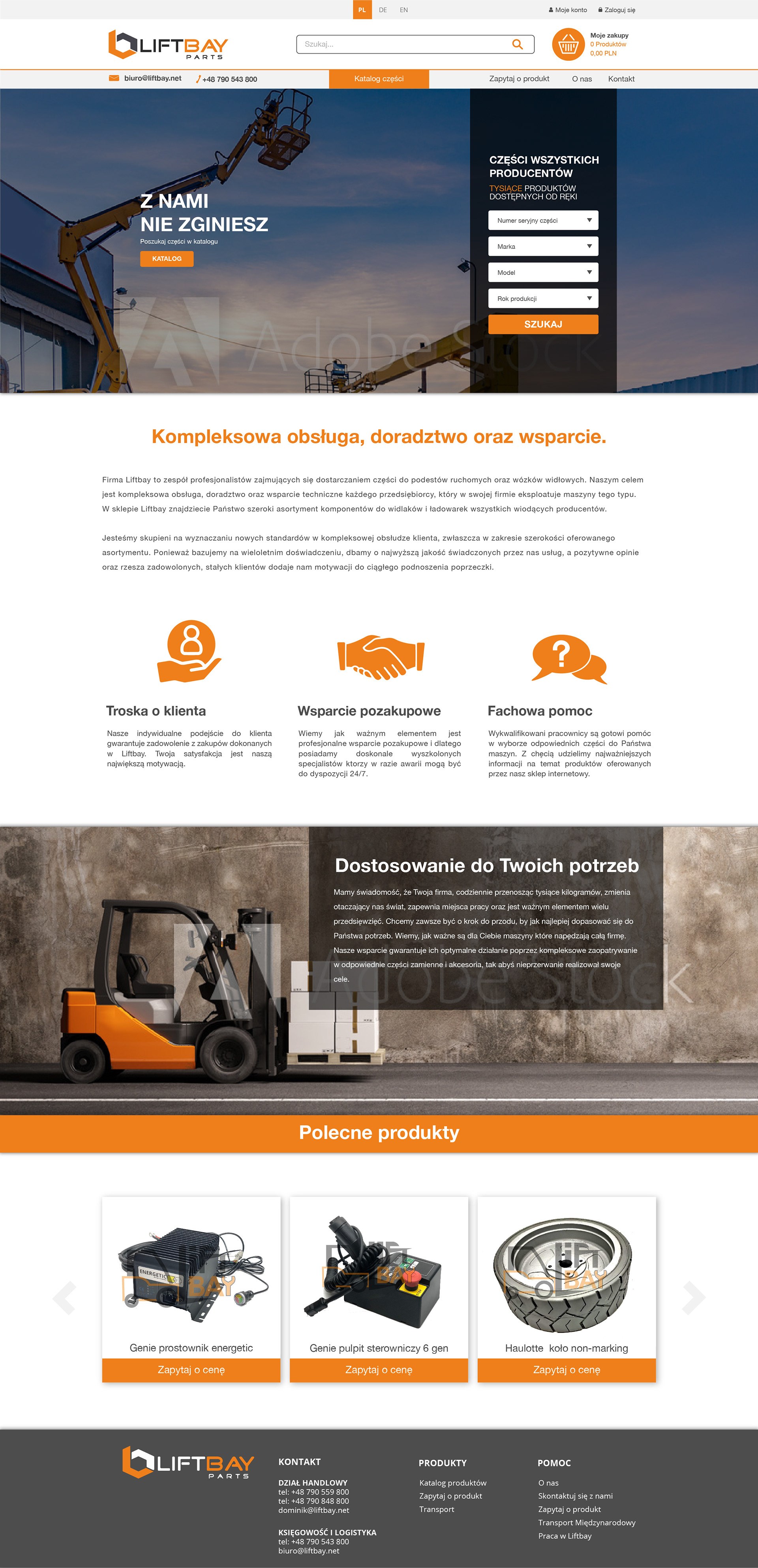 Projekt strony sklepu firmowego Liftbay oferującej części do wózków widłowych i podnośników.